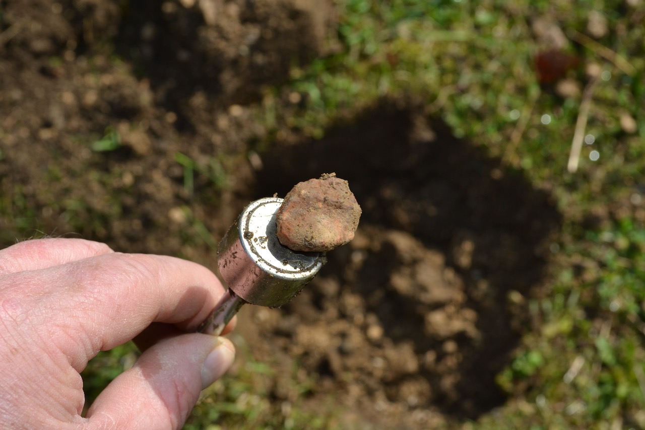 Wir fanden Fragmente in sehr unterschiedlichen Tiefen – von nur 10–15 cm unter der Oberfläche bis zu 40 cm tief im Boden. Jeder Fund musste sorgfältig dokumentiert, getestet und mit einer eindeutigen Nummer versehen werden. Das Naturhistorische Museum Bern führt den offiziellen Katalog, und ein Teil jedes Fundes (in der Regel 10 % oder mehr, abhängig vom Gewicht) bleibt in der Museumssammlung.